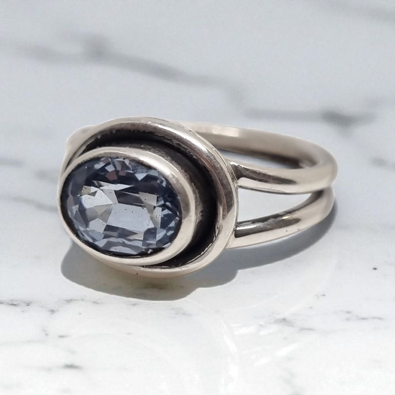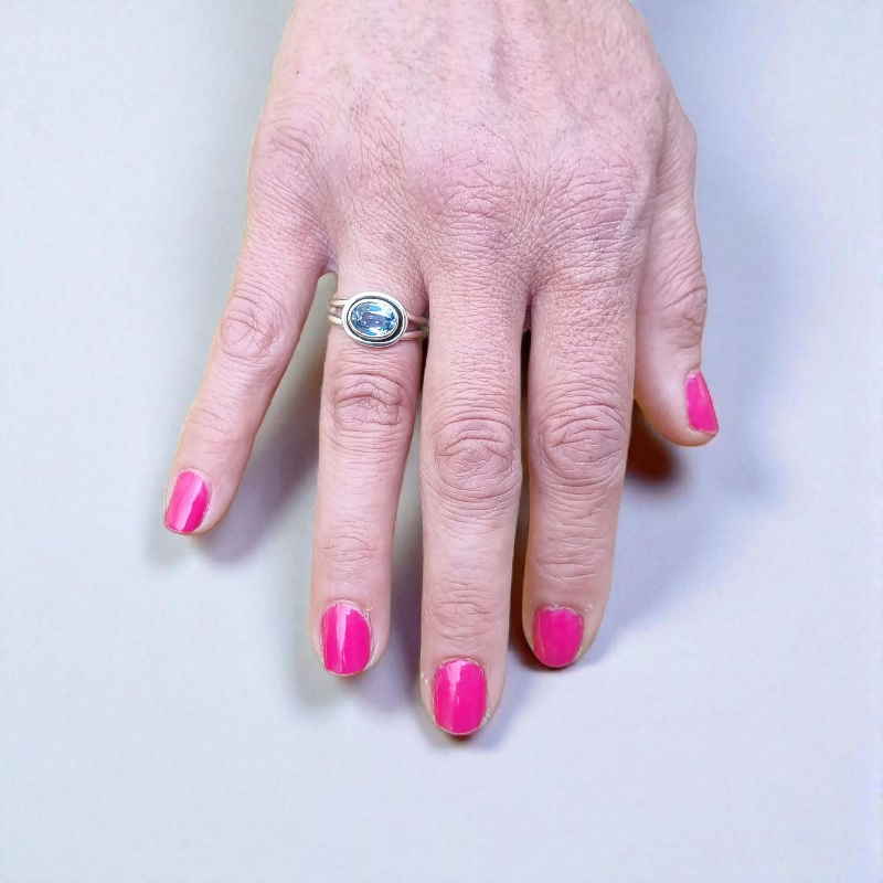 Anillo de Plata 950 y Aguamarina natural de corte oval, su origen es Brasil, Minas Gerais, calidad AAA. Talla 14 disponible para envío inmediato. Se puede agrandar sin costo hasta una talla 17.