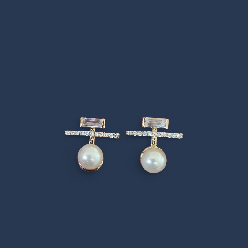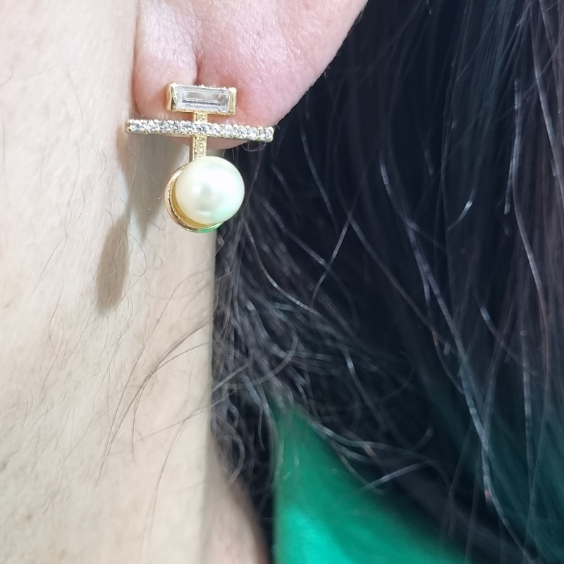 Aros de baño de Oro de 18 quilates de excelente calidad con circones y una Perla sintetica.