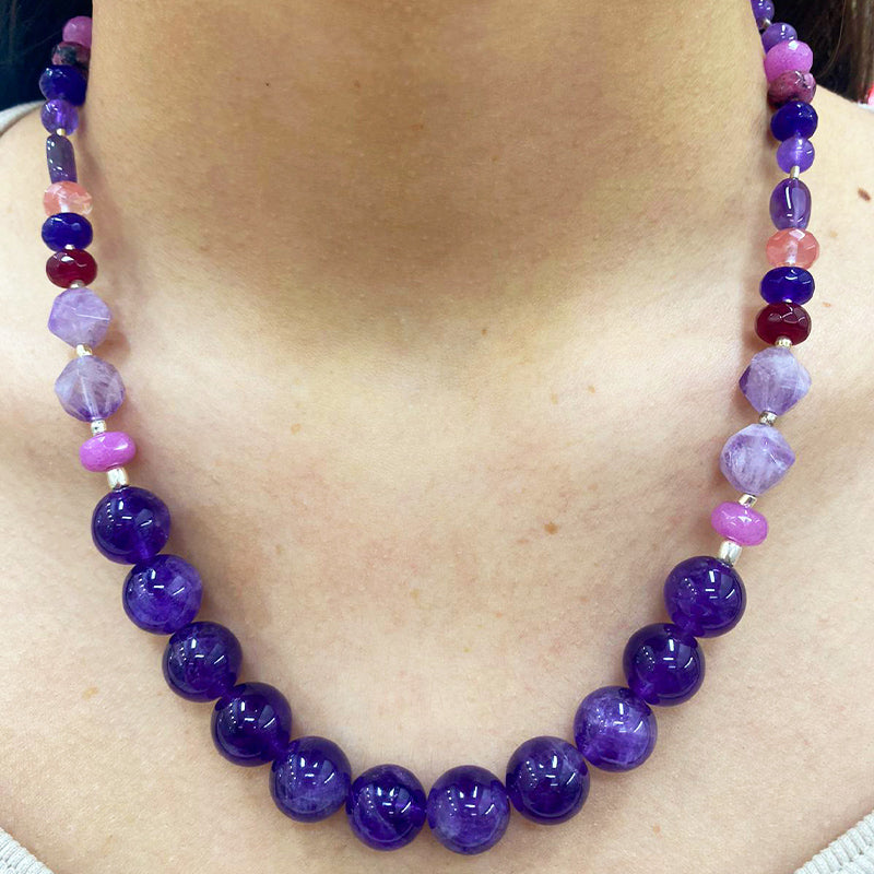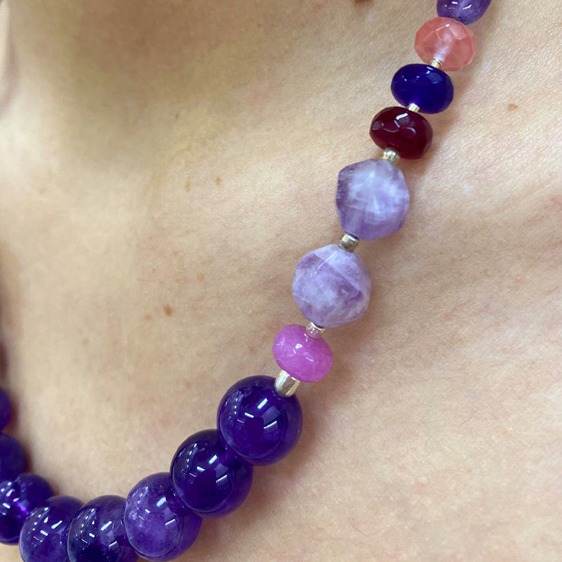 Collar de Amatistas, colores lilas, lavandas y Ágatas, mide 50 cm app