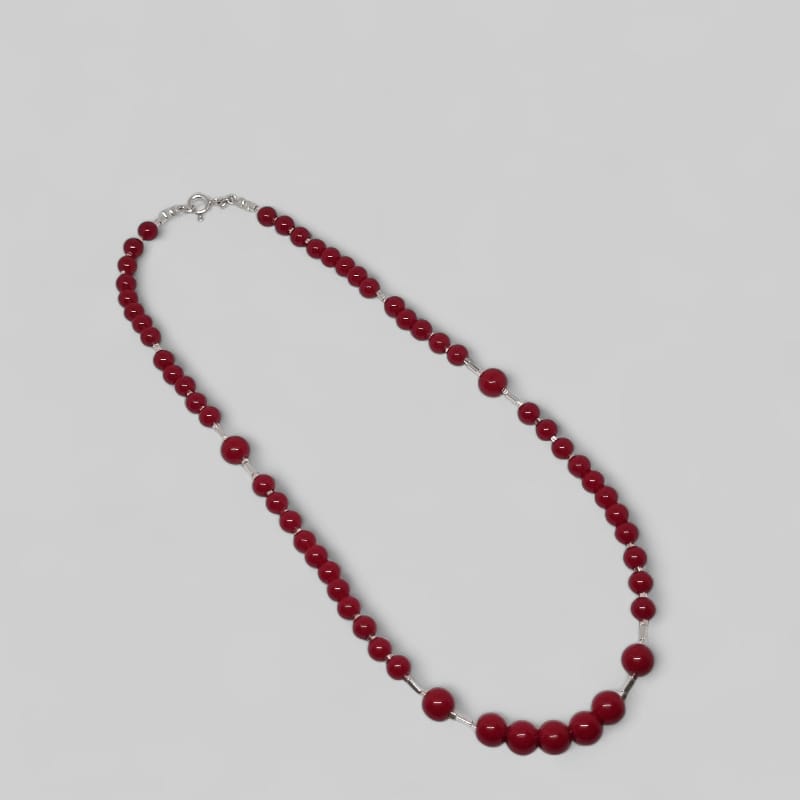 Fabuloso collar de Jade rojo y plata 950. Mide 46 cm de largo.