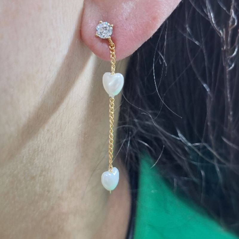 Aros de baño de Oro de 18 quilates de excelente calidad, con perlas sintéticas con forma de corazón.