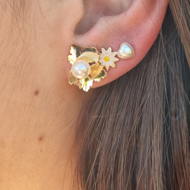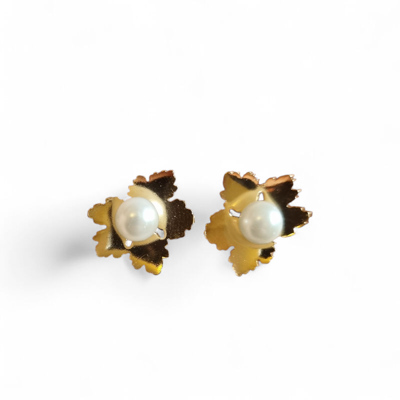 Aros en baño de Oro de 18 quilates, de excelente calidad con Perlas sinteticas, forma de hojas pegadas.