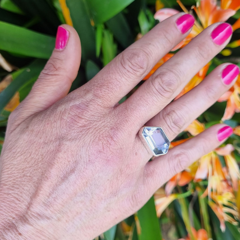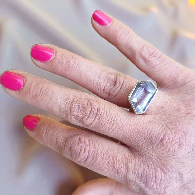 Anillo de Plata 950 y kunzita natural. Talla 19 disponible para envio inmediato. Se puede agrandar sin costo hasta una talla 23.
