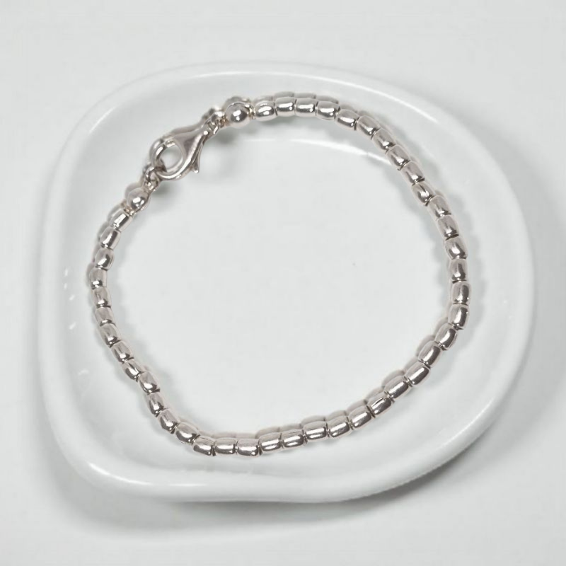 Pulsera de mostacillas de Plata 950, mide 18cm de largo.