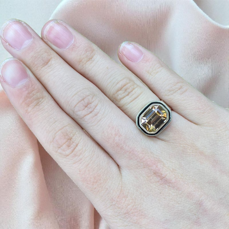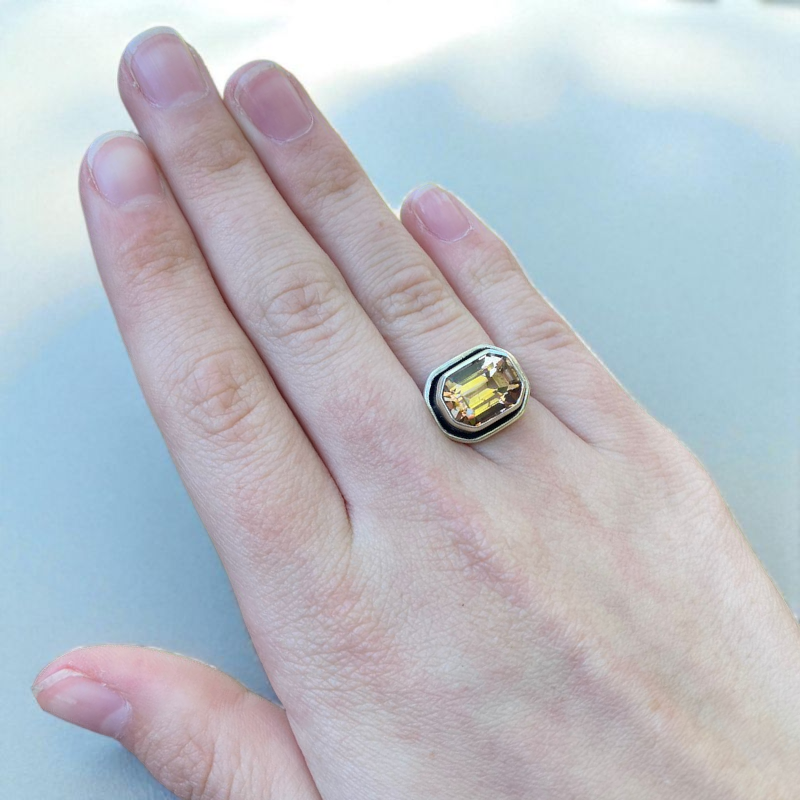 Anillo de Plata 950 y piedra natural Topacio bicolor, talla 11 disponible para envío inmediato. Se puede agrandar sin costo hasta una talla 15.