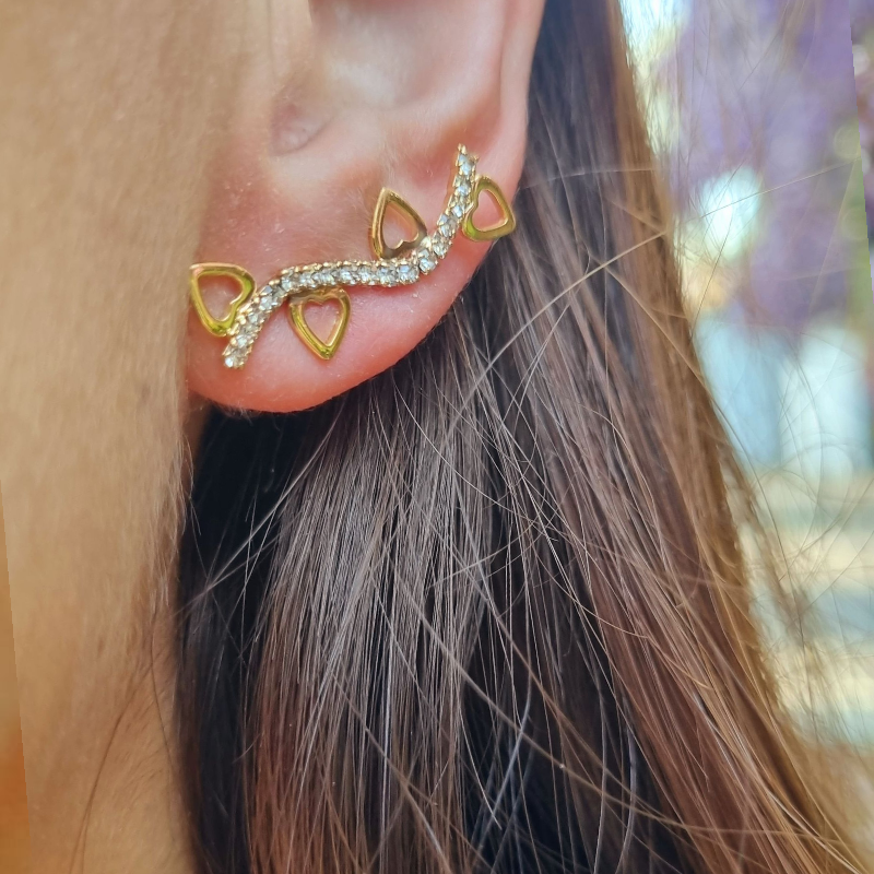 Aro tipo trepador de baño de Oro de 18 quilates de excelente calidad, con circones blancos.