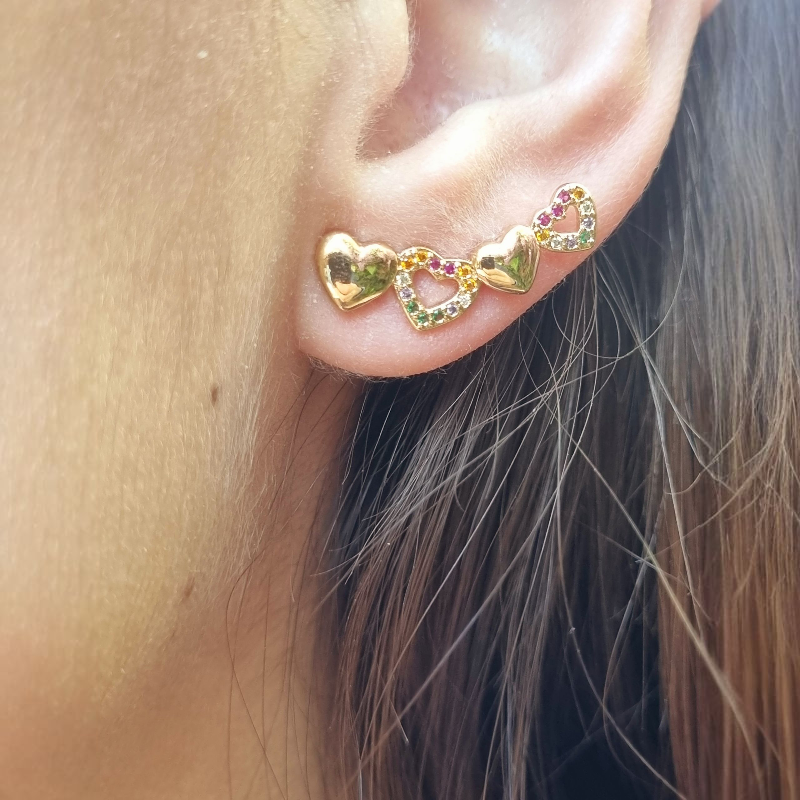 Aro tipo trepador en baño de oro de 18 quilates de excelente calidad, con circones de colores.