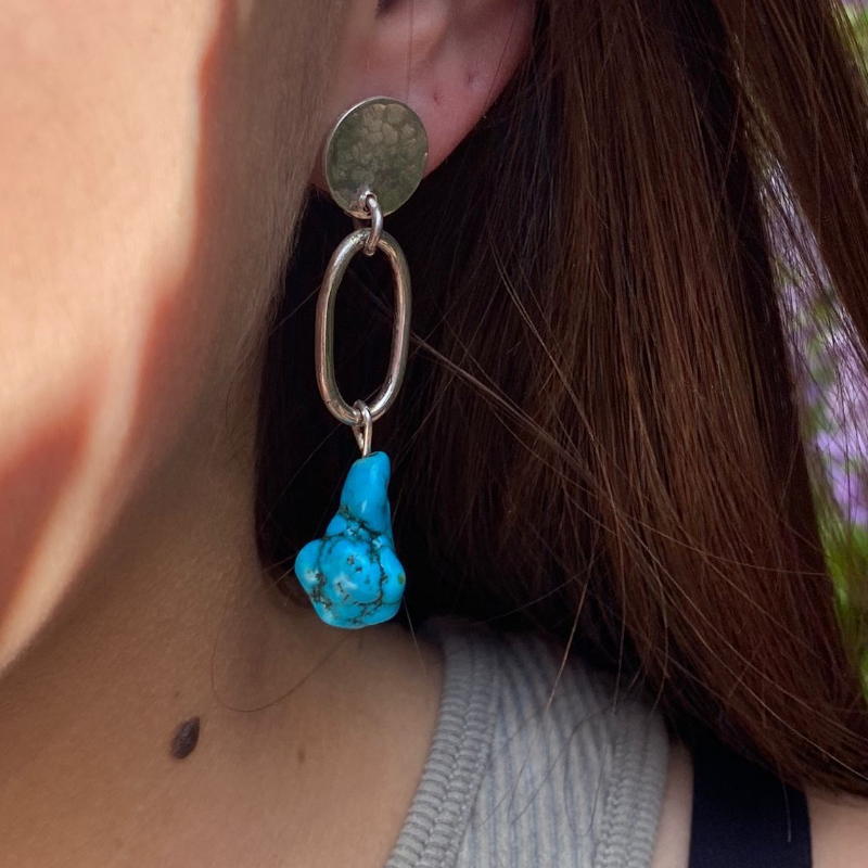 Aros de Plata 950 y Turquesas en bruto naturales de origen USA, miden 5 cm de largo aprox.